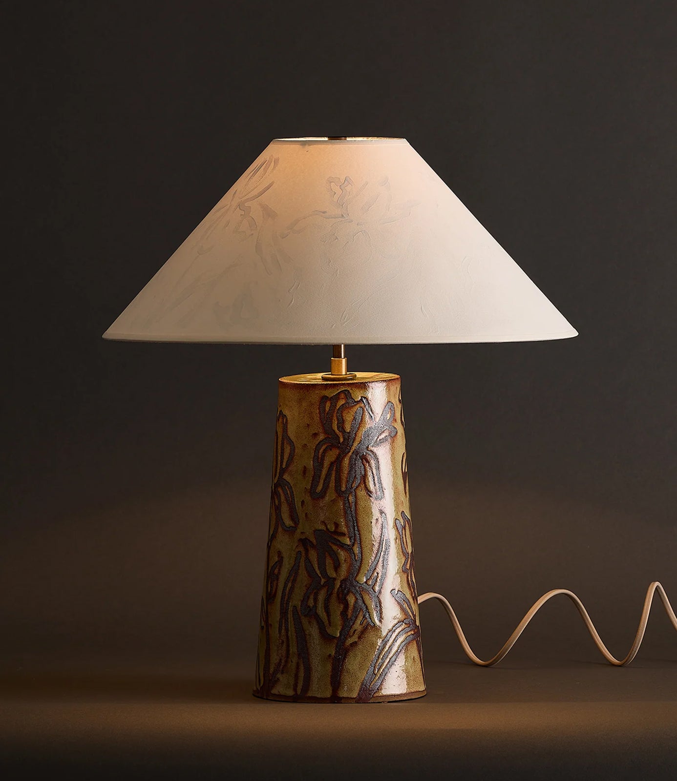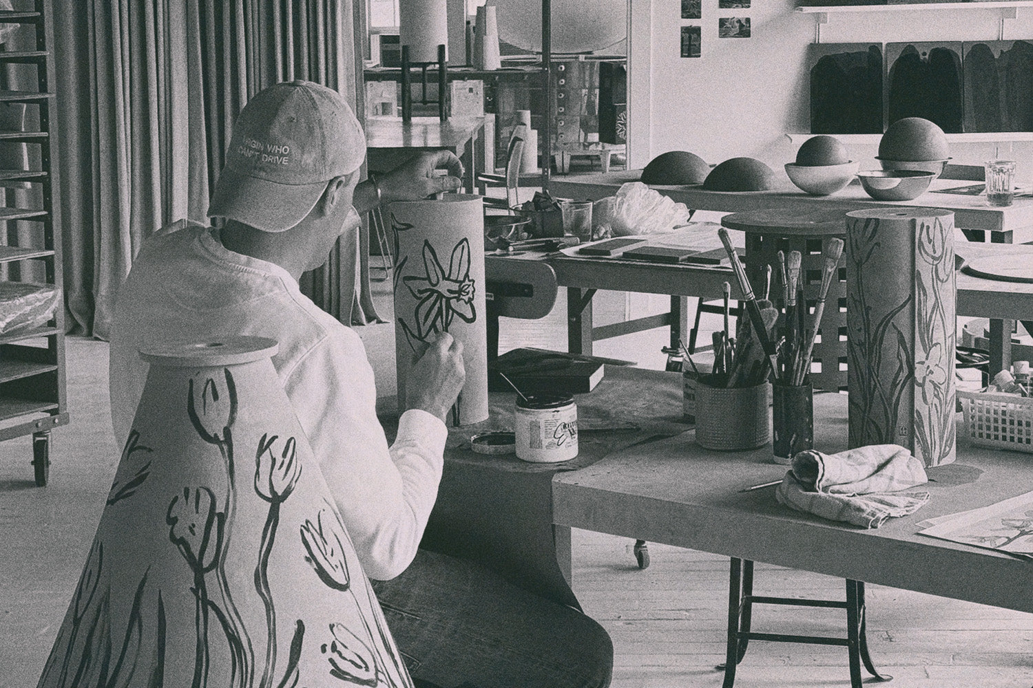 Charlie hand-painting the base of a Daffodil Table Lamp, from Capsule 25.02, in our studio in Litchfield, CT.