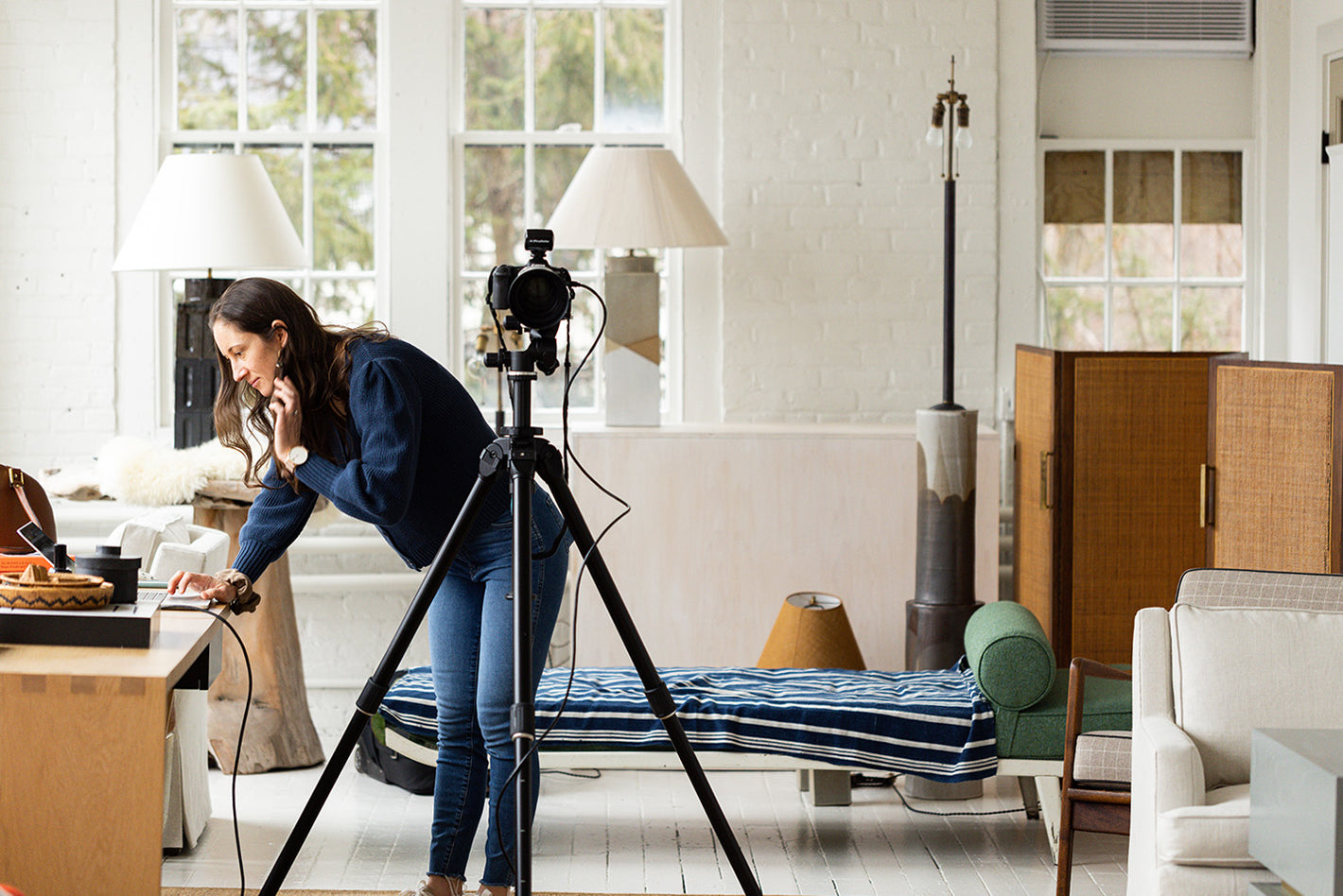 Claire, the studio’s production coordinator carefully preparing the parts of a Washington Lamp.