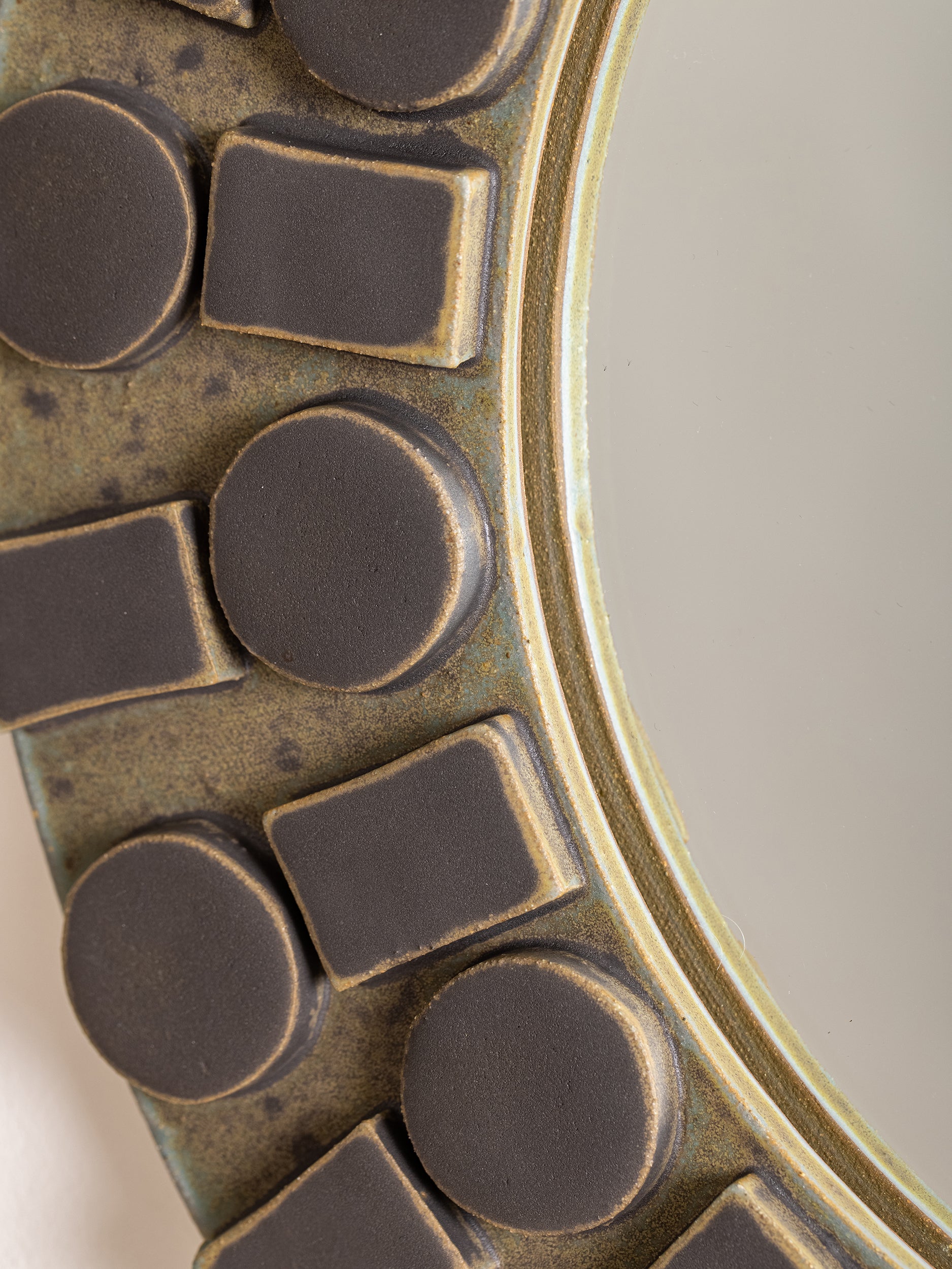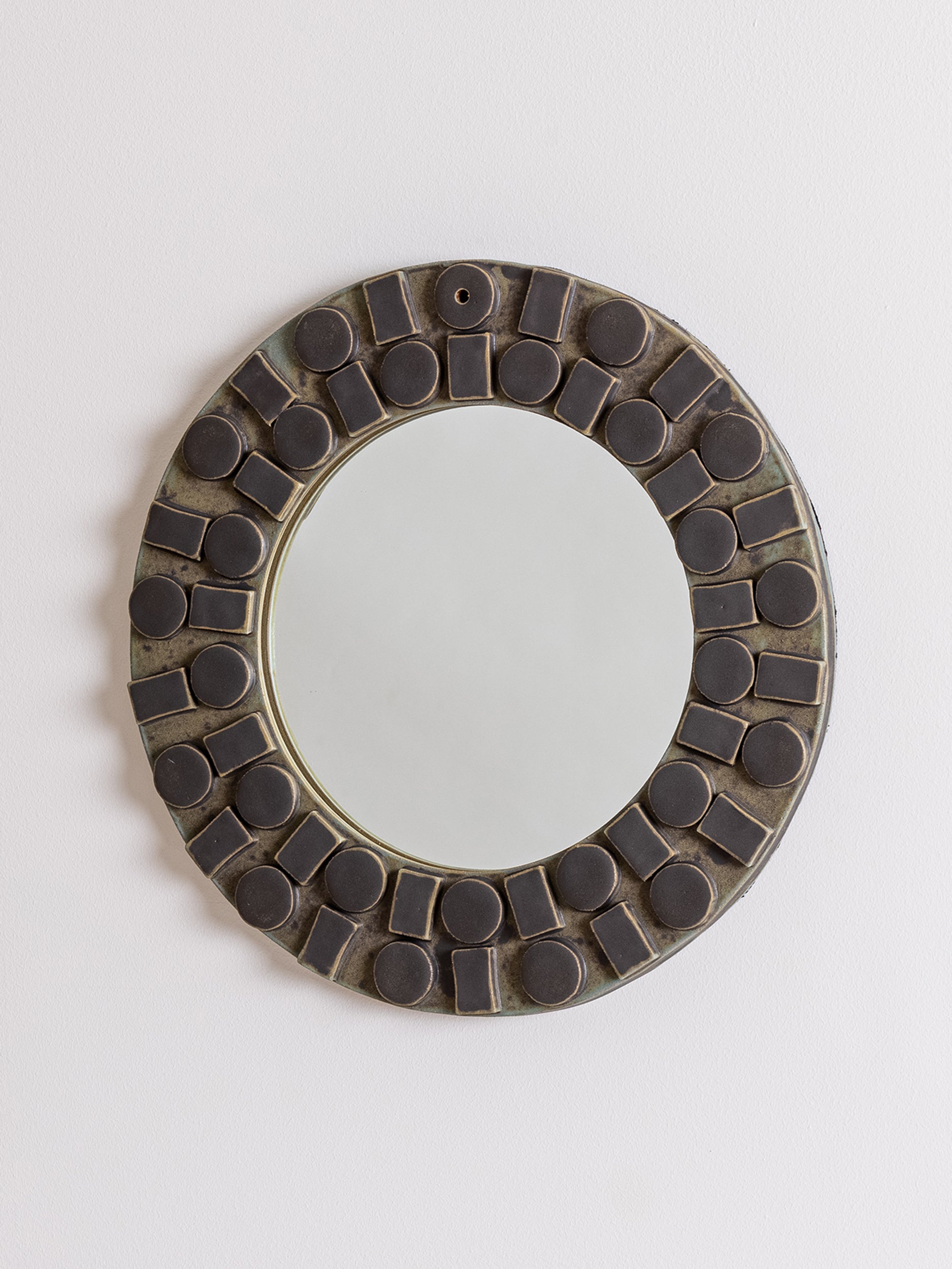 Our stoneware Cirque Wall Mirror is handcrafted using slab-construction techniques.