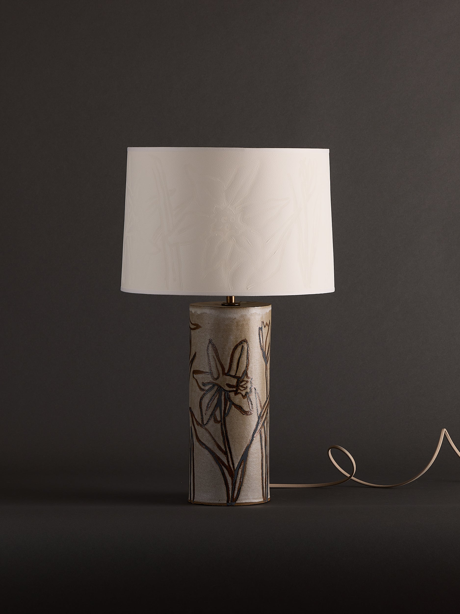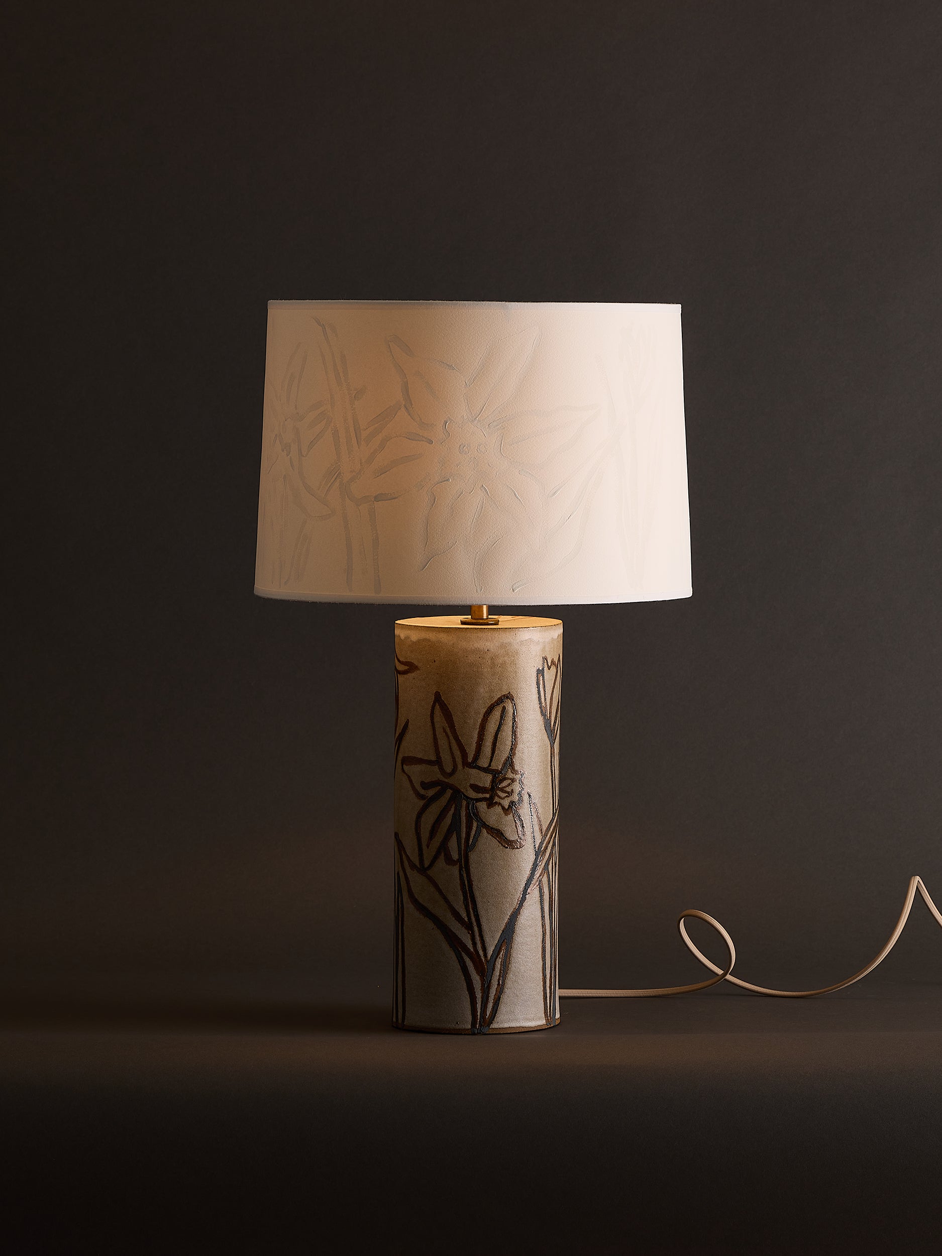 Our stoneware Daffodil Lamp is handcrafted using slab-construction techniques.