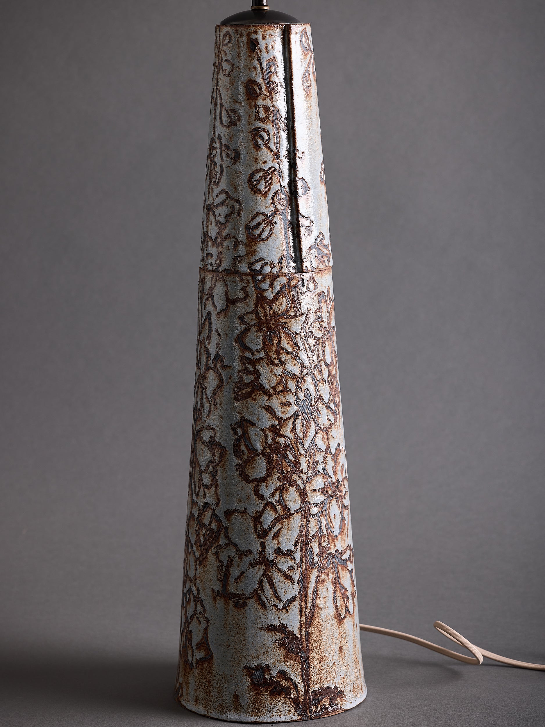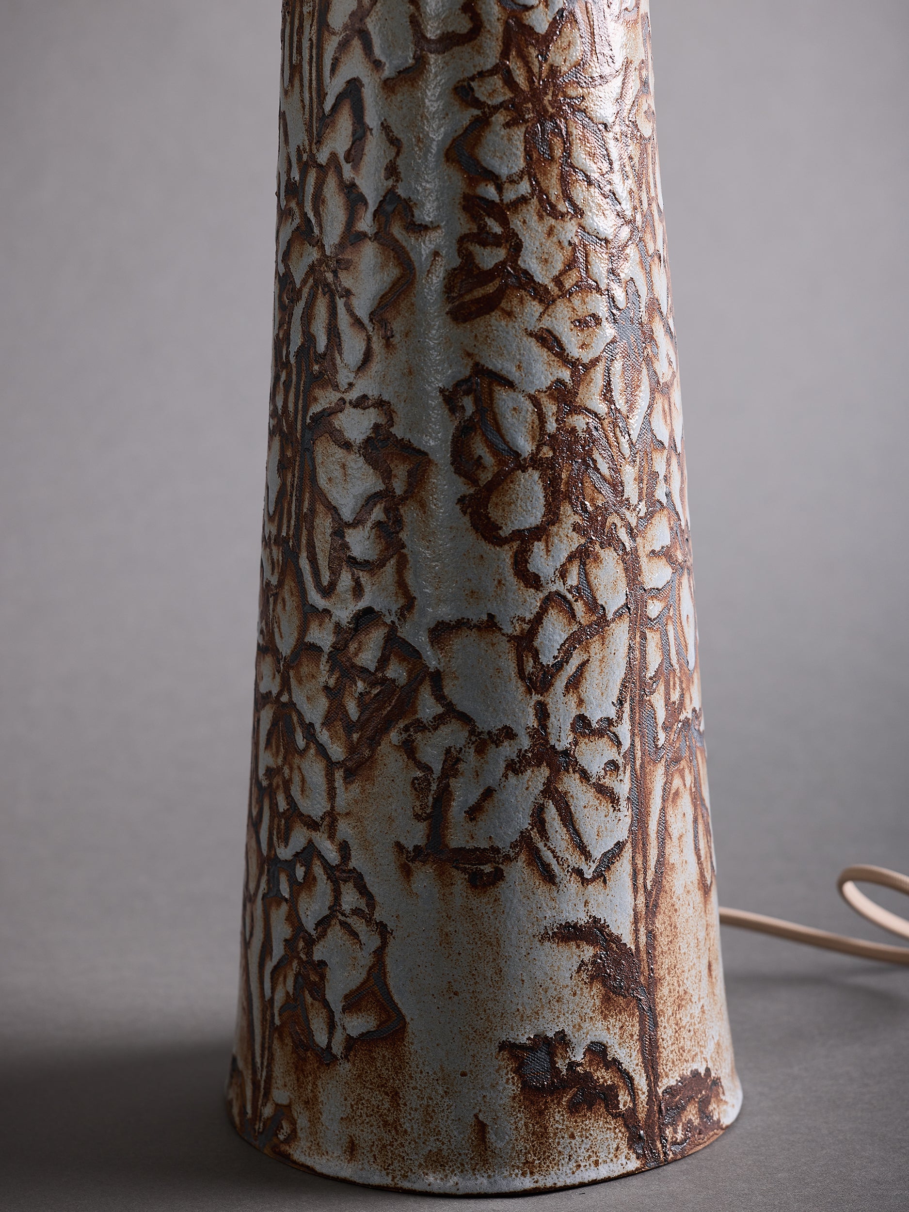 Our stoneware Delphinium Lamp is handcrafted using slab-construction techniques.