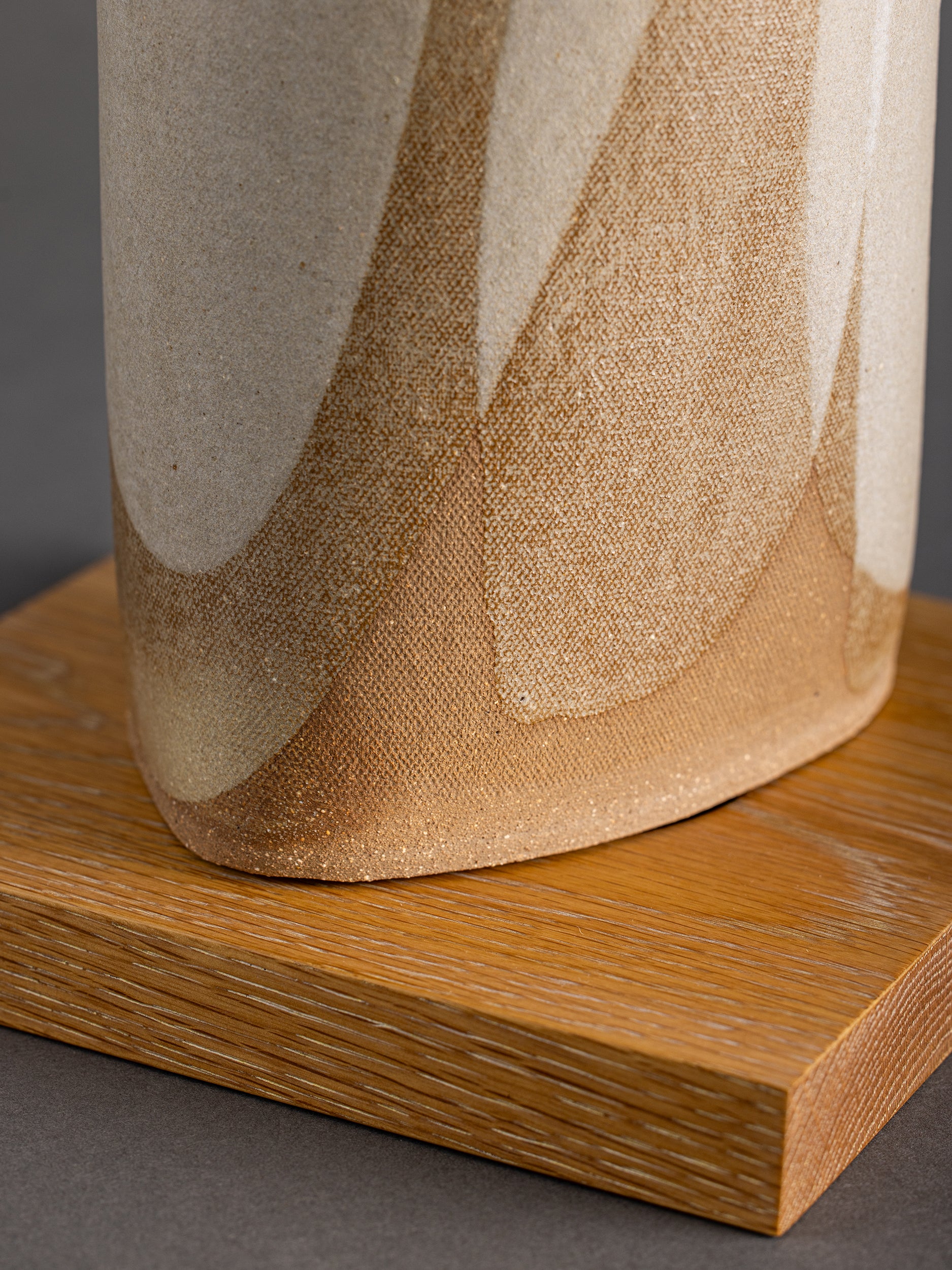 Our stoneware and oak Drift Table Lamp is handcrafted using slab-construction and cerusing techniques.