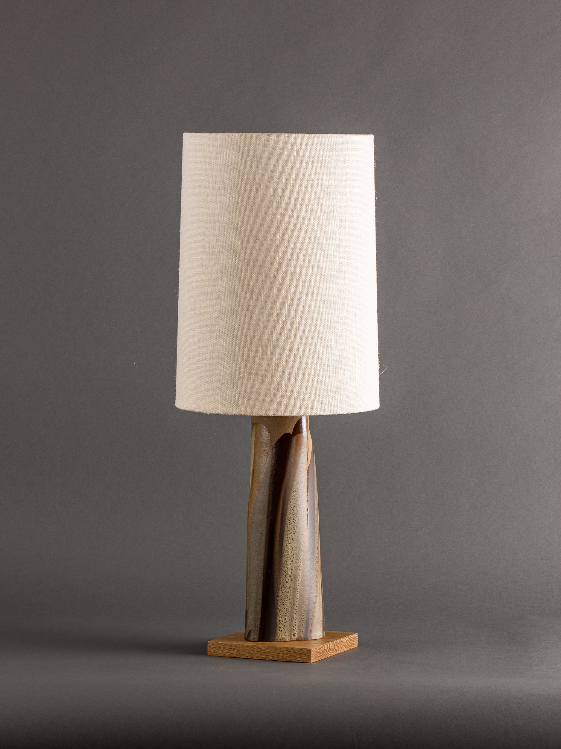 Our stoneware and oak Drift Table Lamp is handcrafted using slab-construction and cerusing techniques.