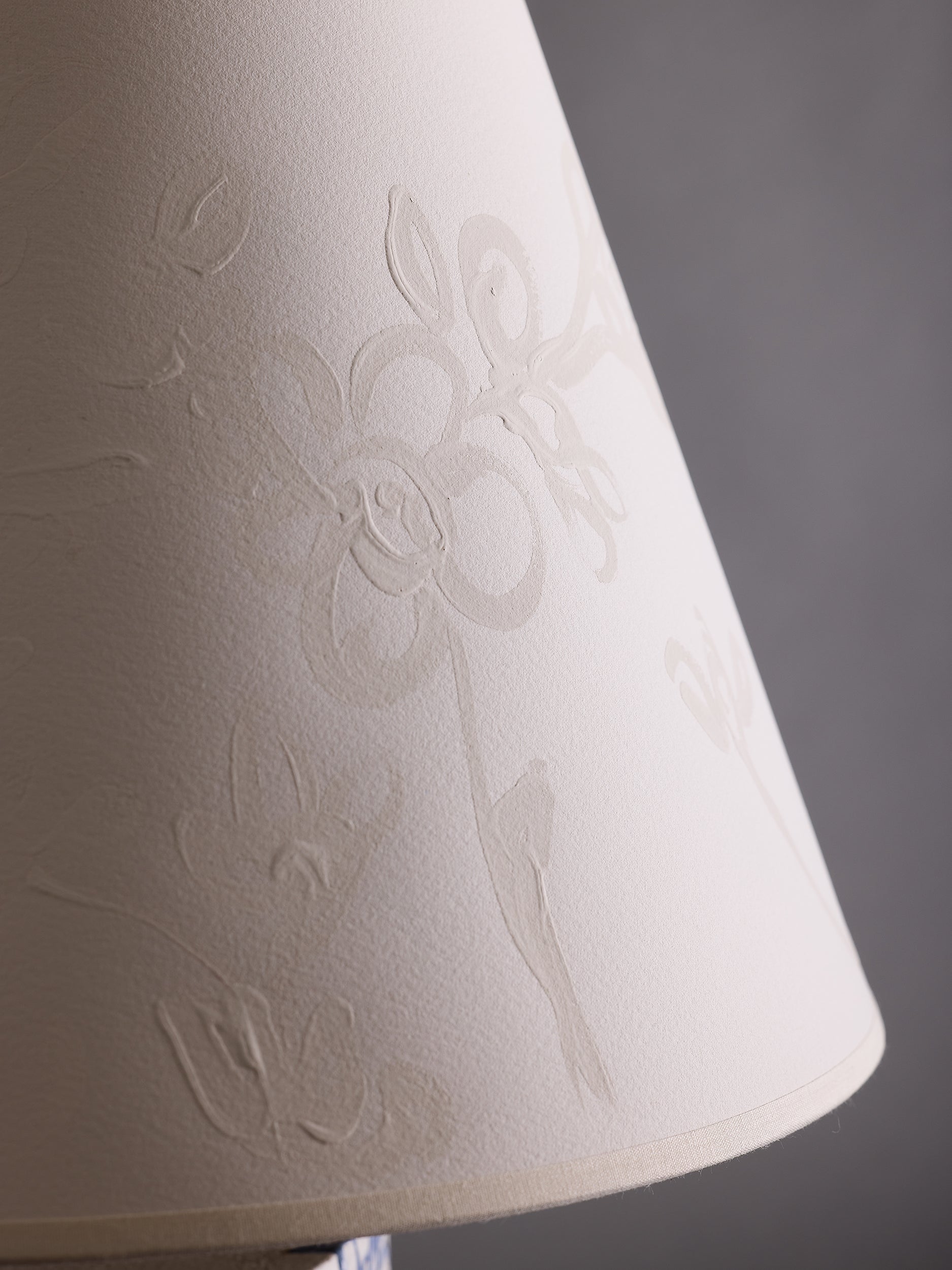 Our stoneware Freesia Lamp is handcrafted using slab-construction techniques.