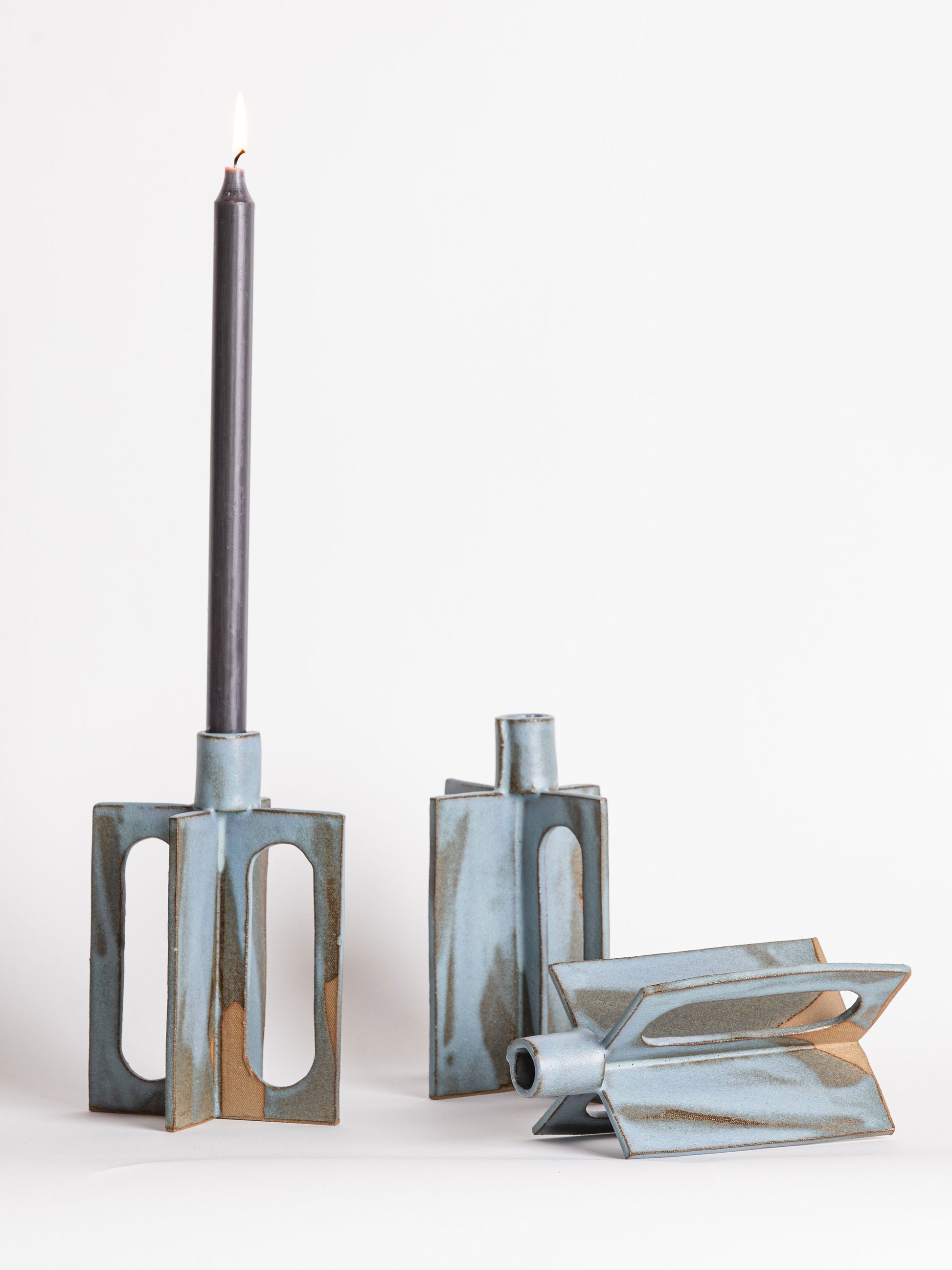 Our stoneware Handle Candle Holder is handcrafted using slab-construction techniques.