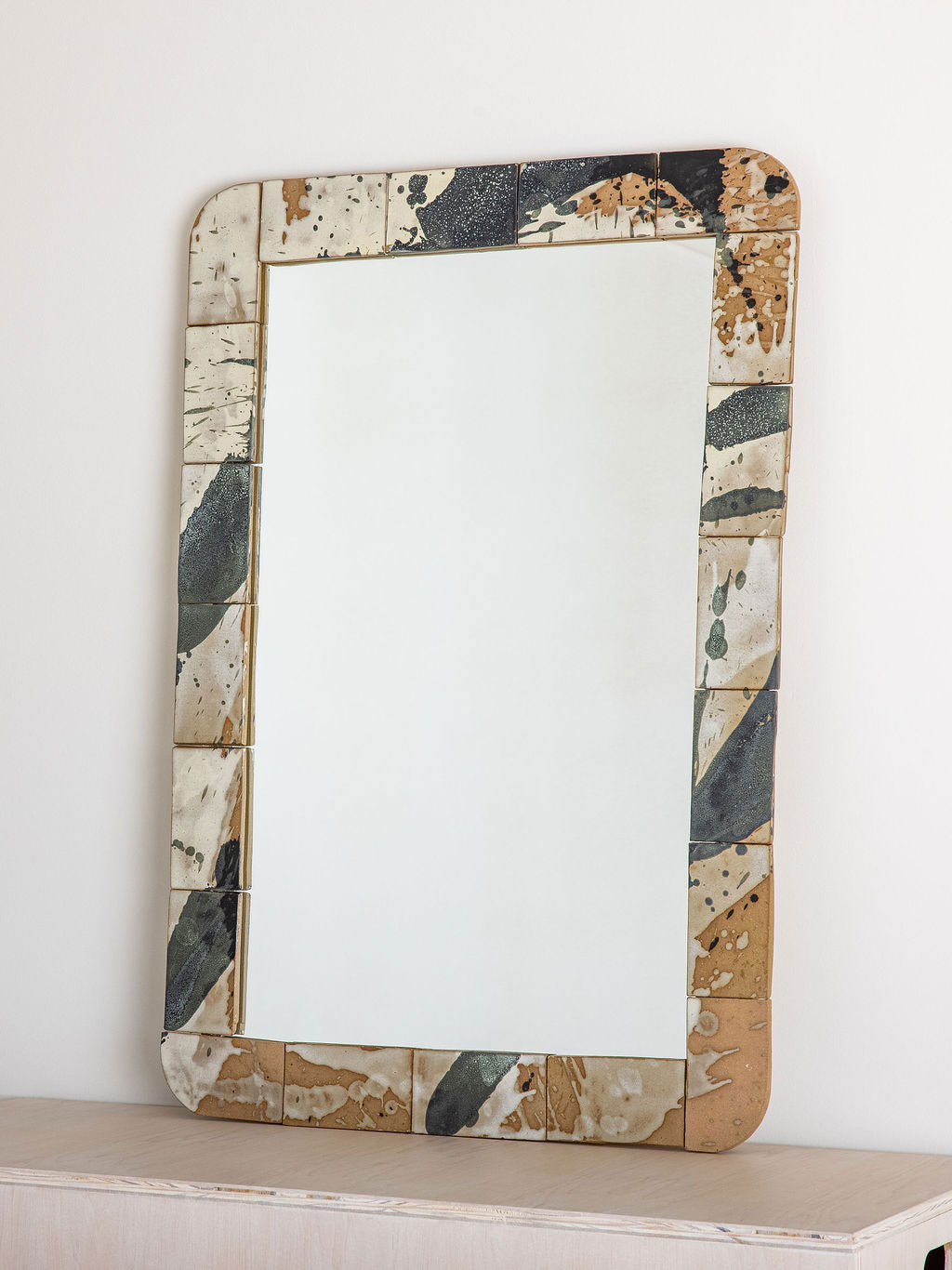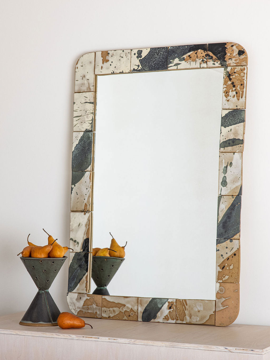 Our stoneware Hutton Mirror is handcrafted using slab-construction techniques.