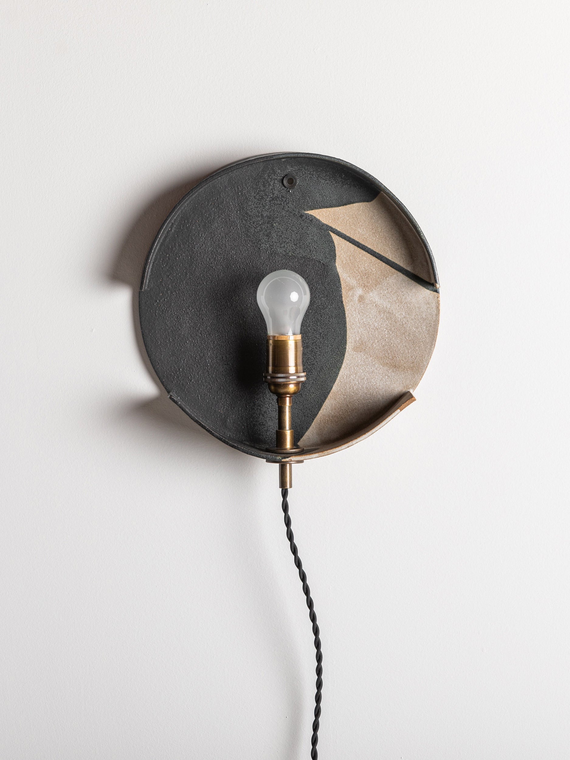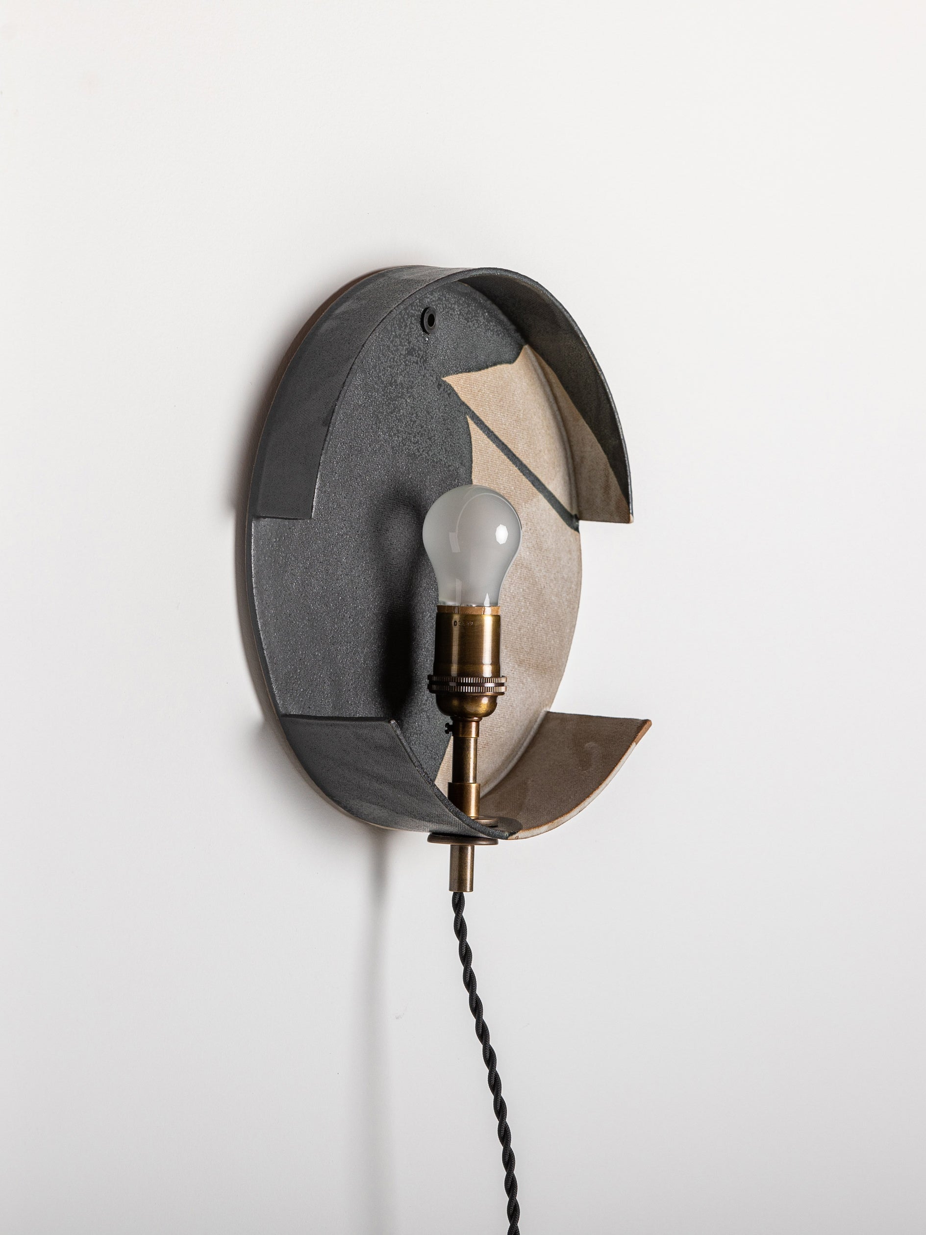Our stoneware Hutton Sconce is handcrafted using slab-construction techniques. It can be hardwired and UL Listed at an additional cost.