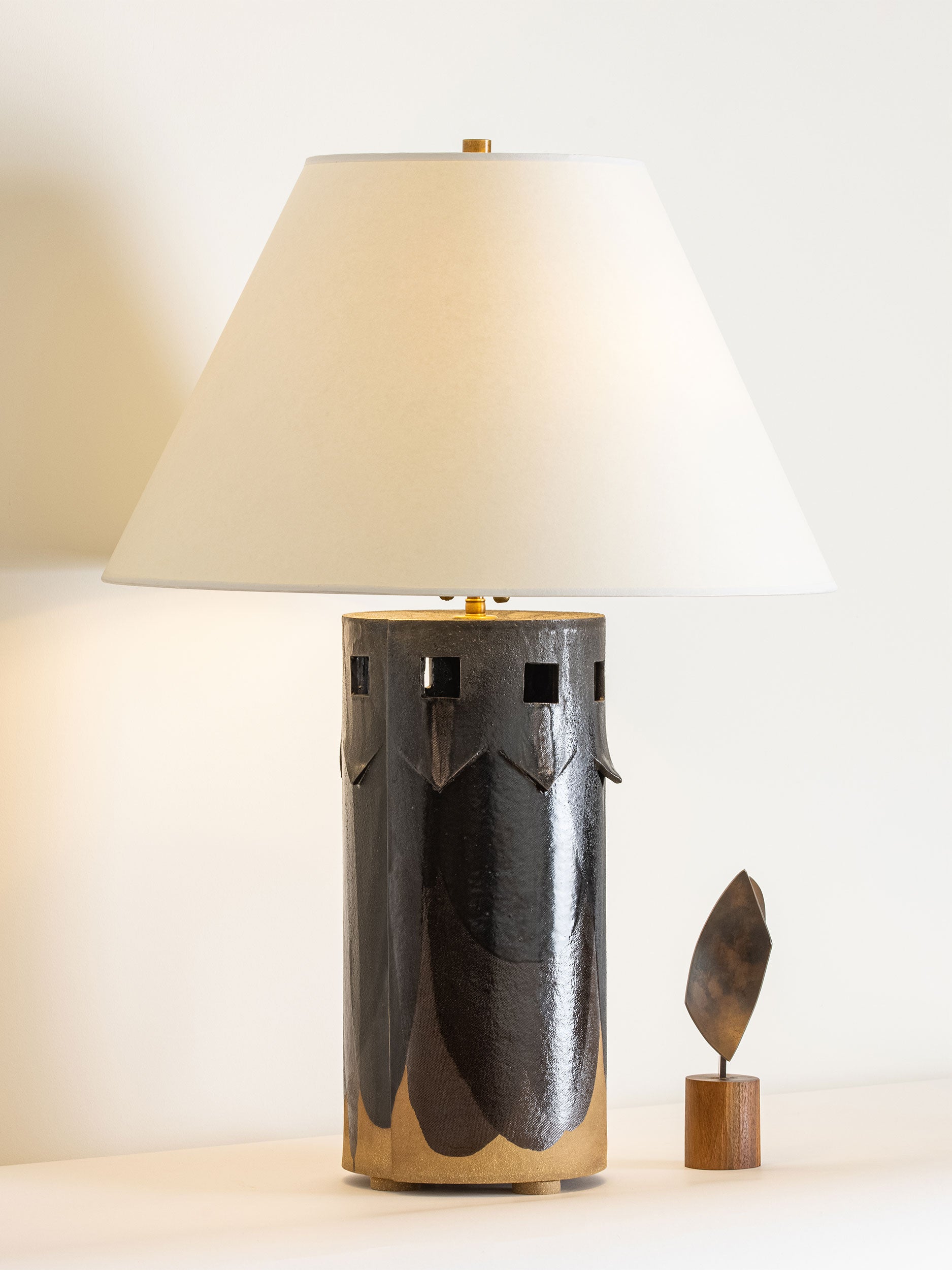 Our stoneware Jester Table Lamp is handcrafted using slab-construction techniques.