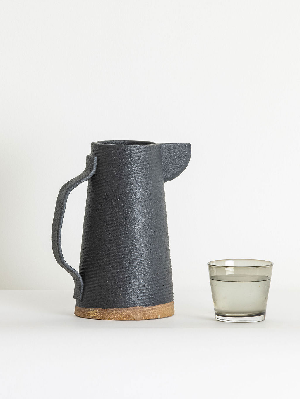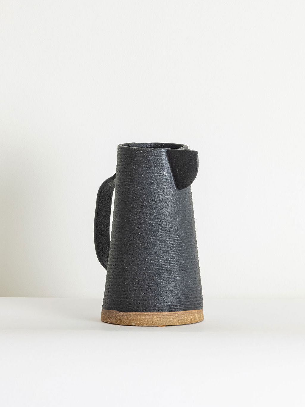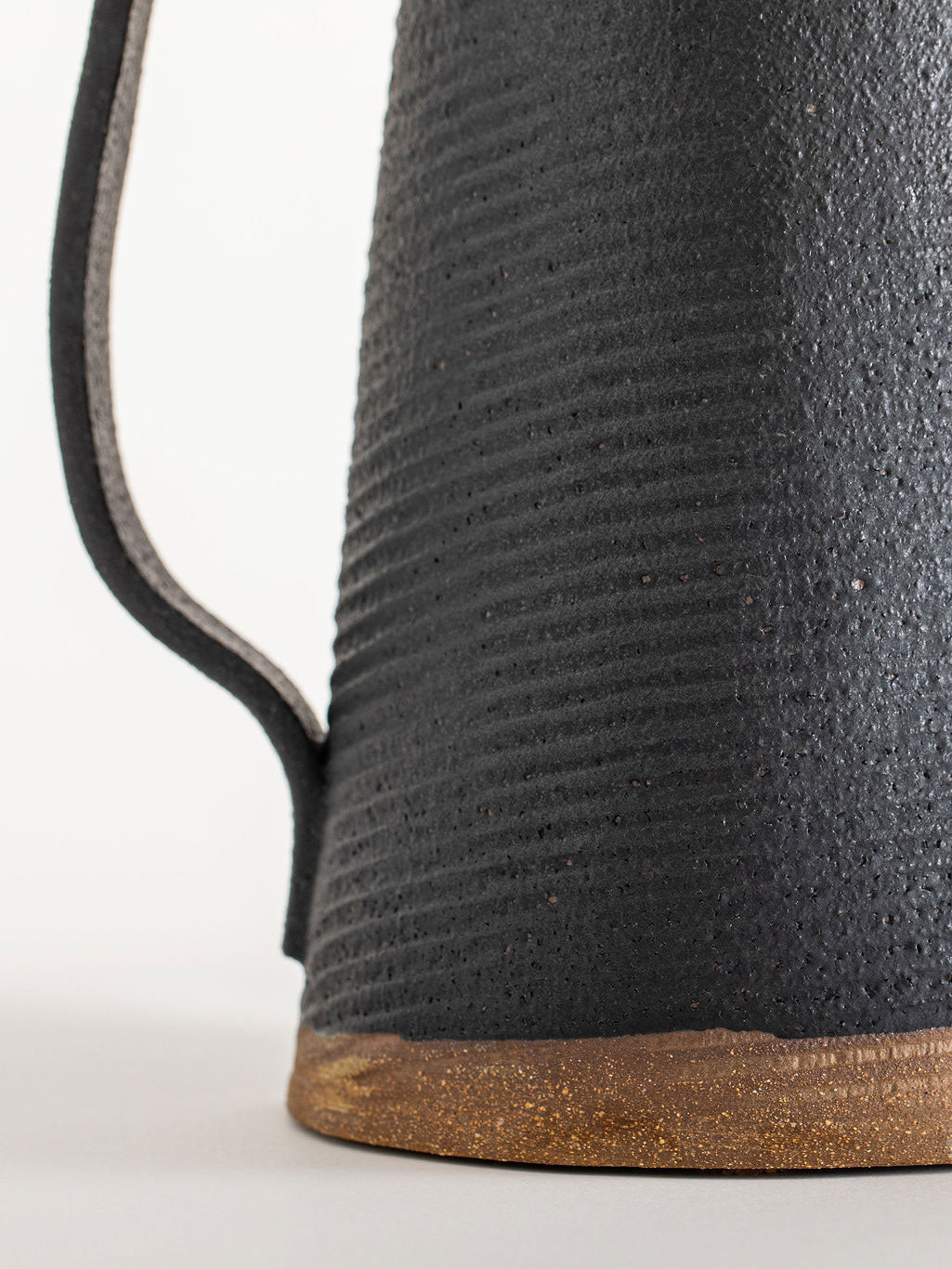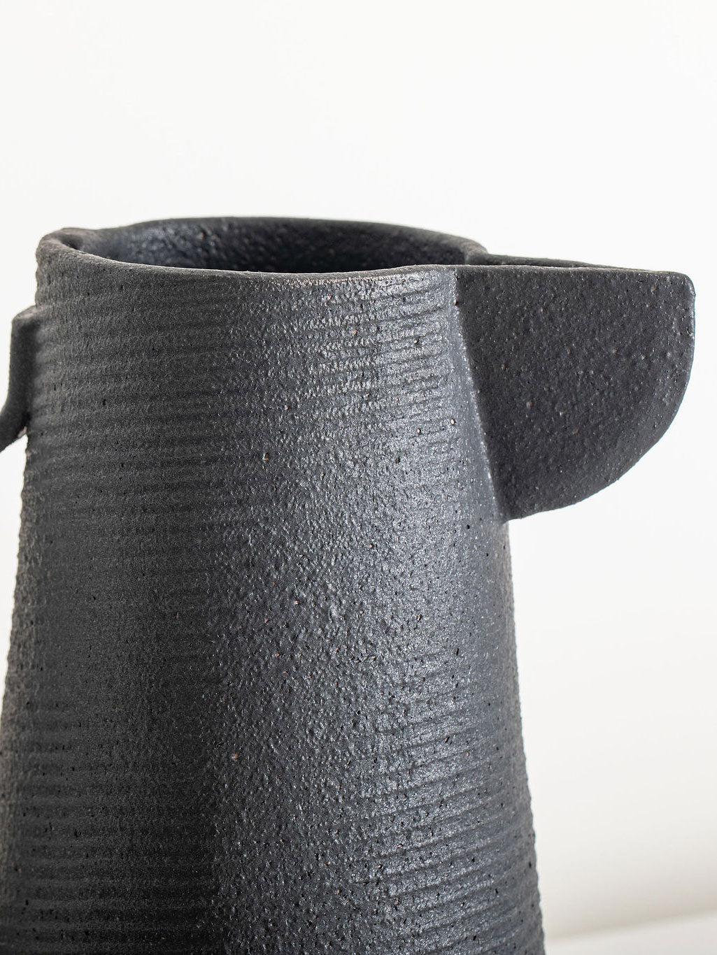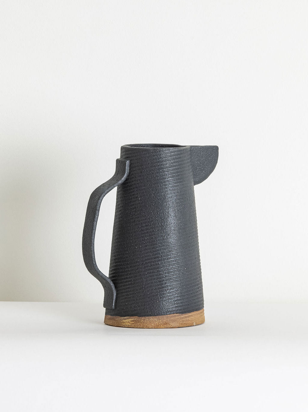 Our stoneware Miller Pitcher is handcrafted using slab-construction techniques. The vase's pattern is created by rolling the surface with textured rolling pins and rods.