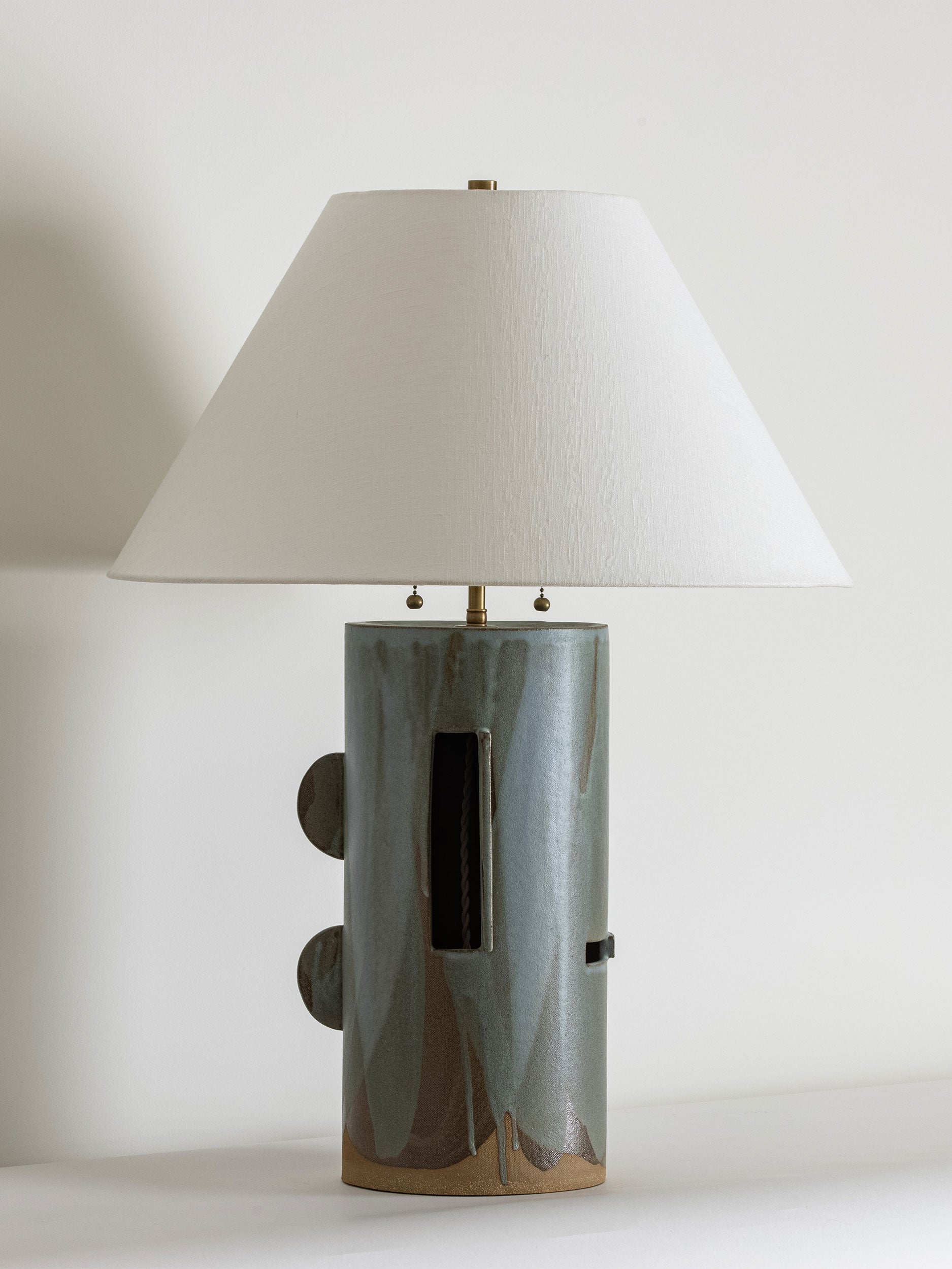 Our stoneware Nevelson Lamp is handcrafted using slab-construction techniques.