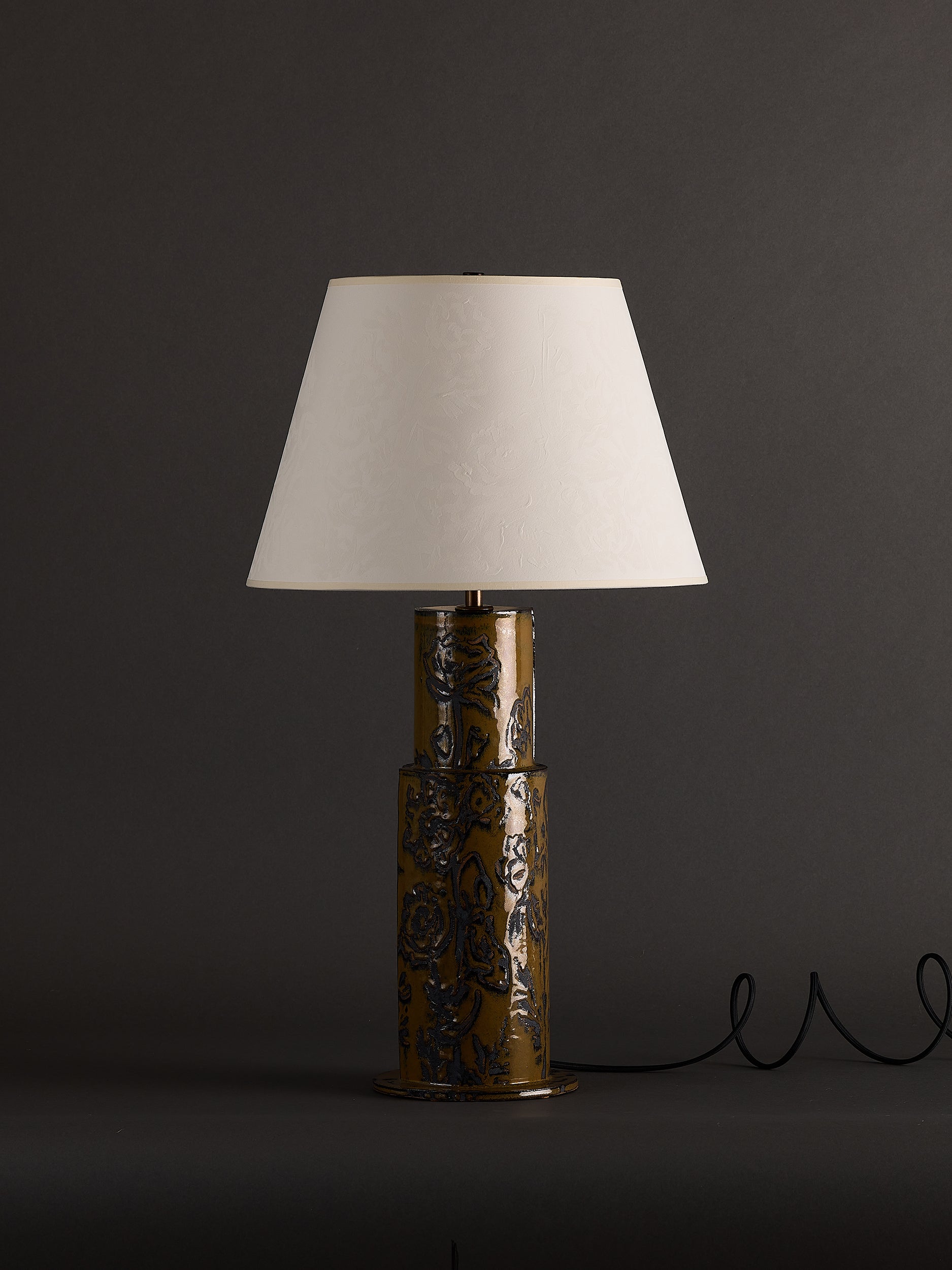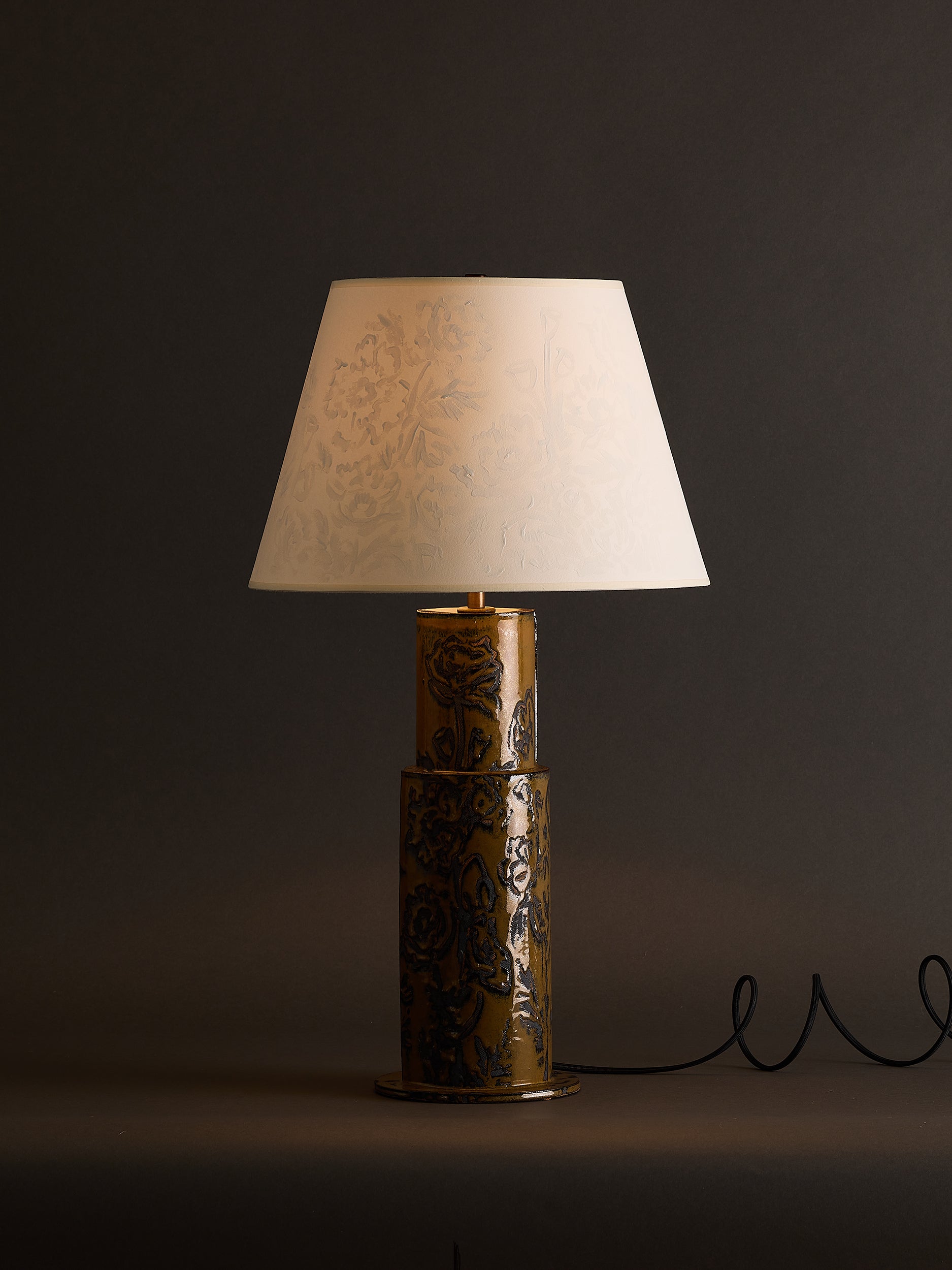 Our stoneware Poppy Lamp is handcrafted using slab-construction techniques.