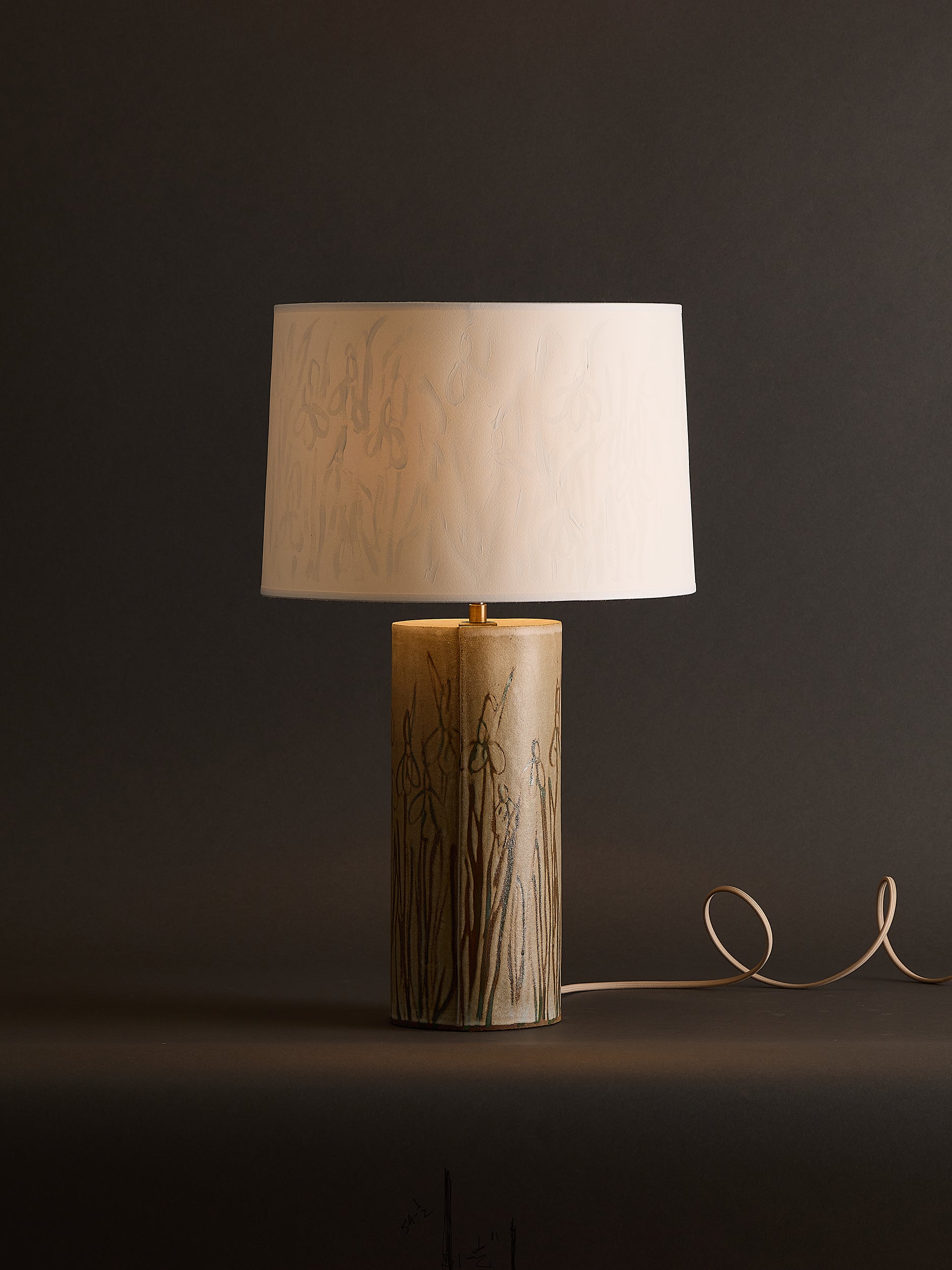 Our stoneware Snow Drop Lamp is handcrafted using slab-construction techniques.