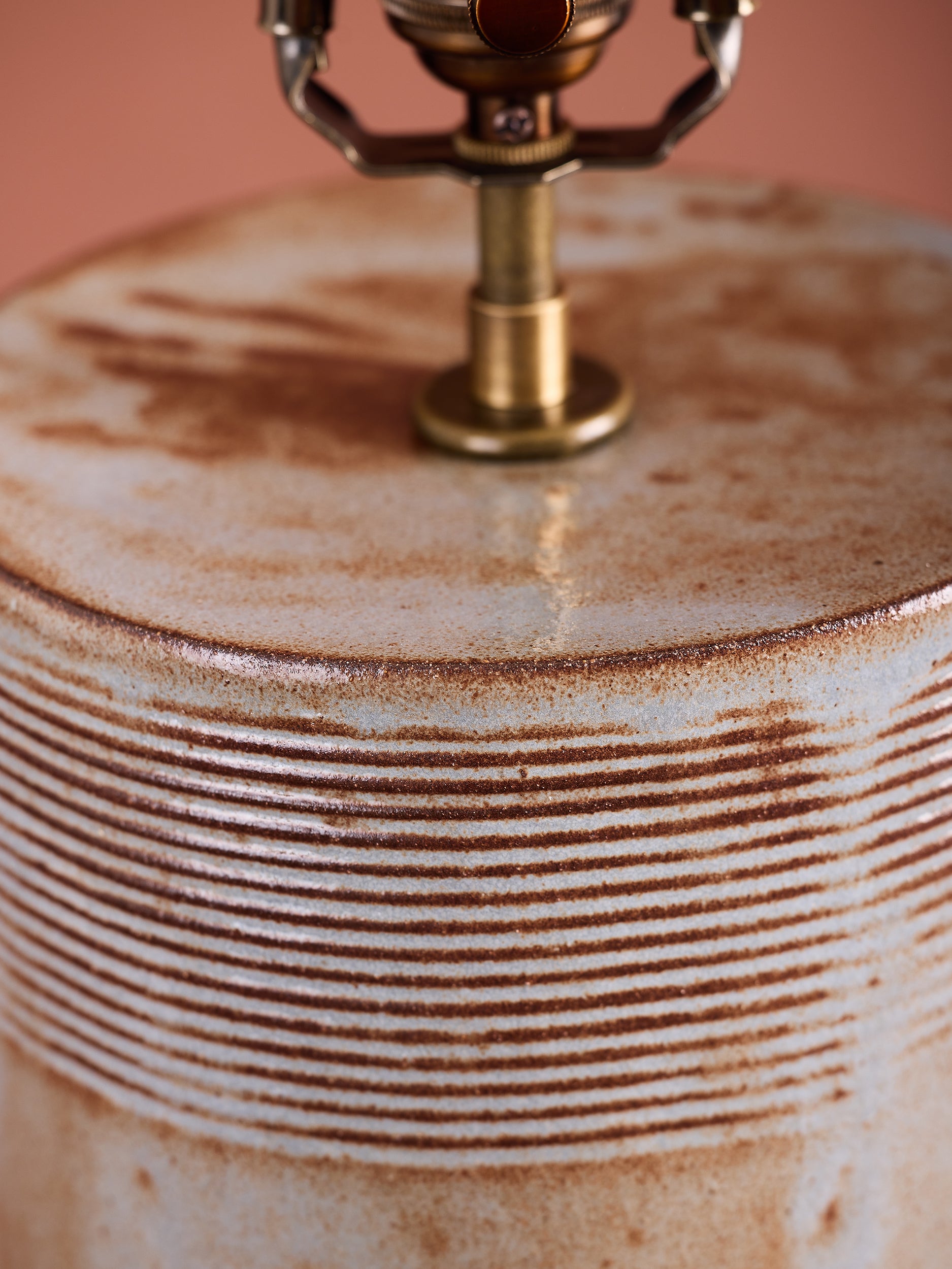 Our stoneware Cilindro Table Lamp #1 is handcrafted using slab-construction techniques. The lamp’s pattern is created by rolling the surface with textured rolling pins and rods. The lamp’s sgraffiato pattern is created by scoring the surface with a wire-loop tool.