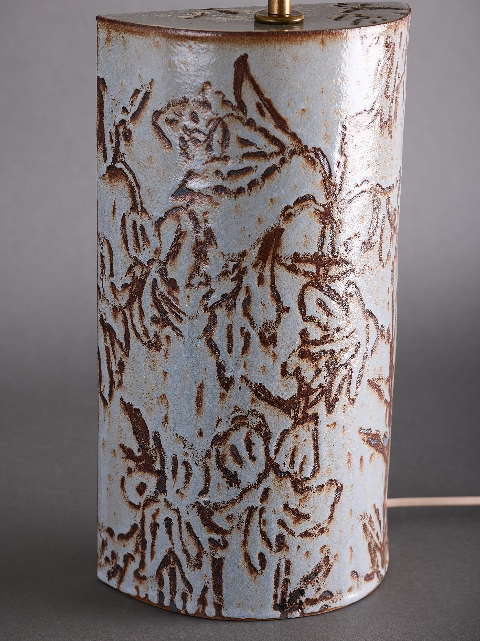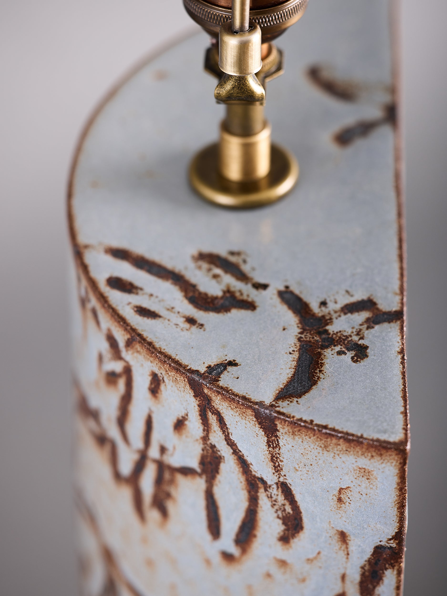 Our stoneware Tiger Lily Lamp is handcrafted using slab-construction techniques.