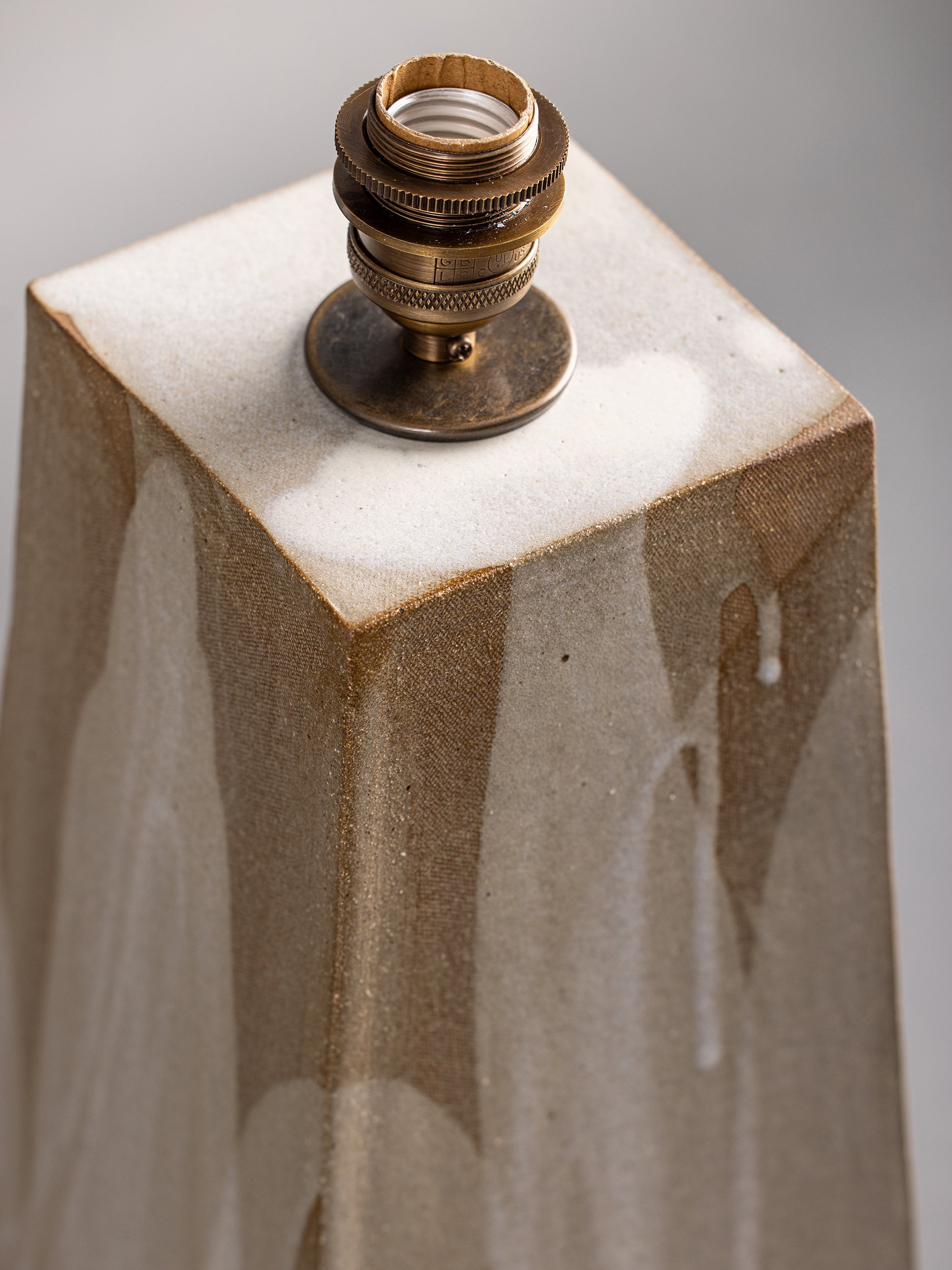 Our stoneware and oak Tower Floor Lamp is handcrafted using slab-construction and cerusing techniques.