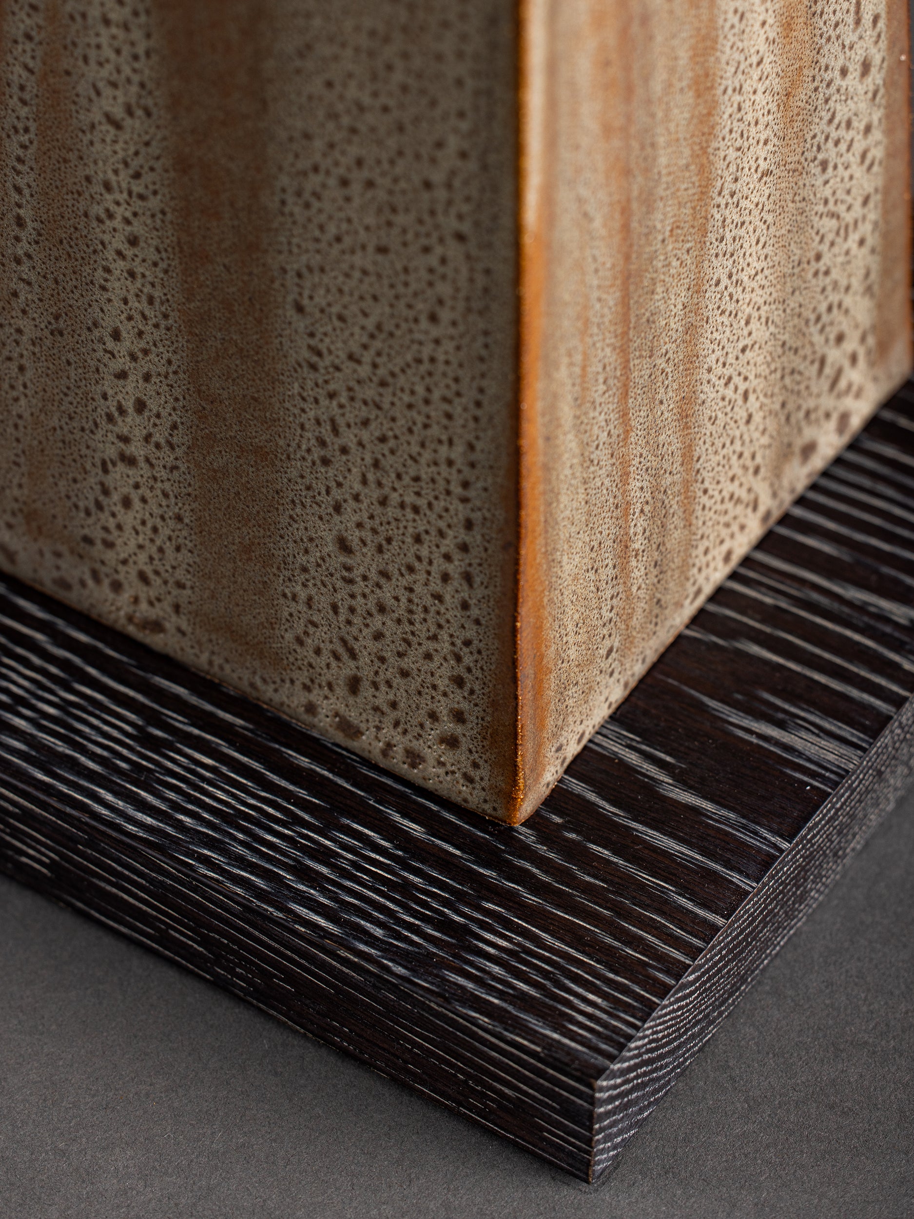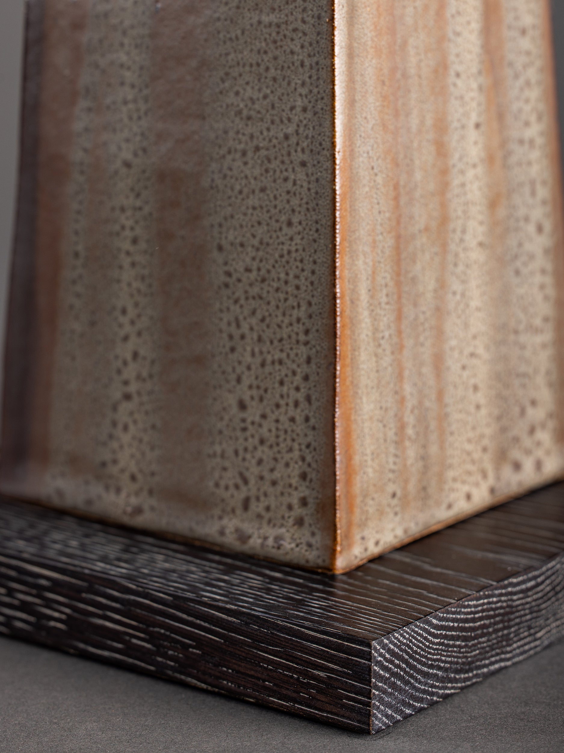 Our stoneware and oak Tower Table Lamp is handcrafted using slab-construction and cerusing techniques.
