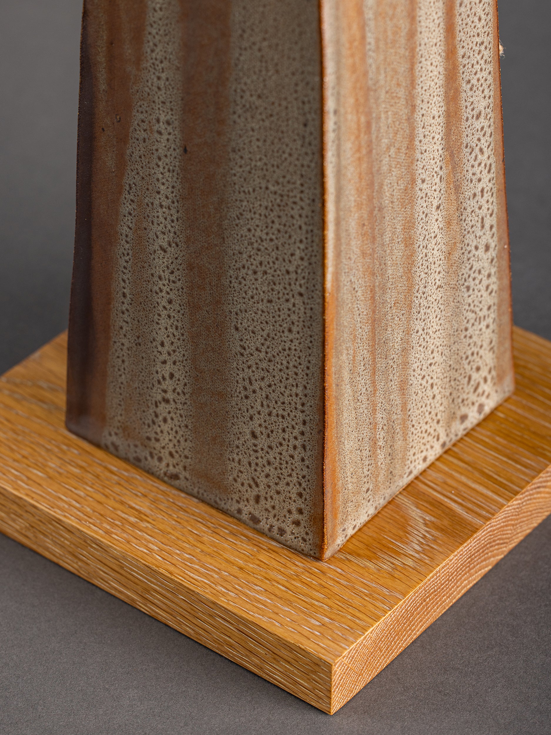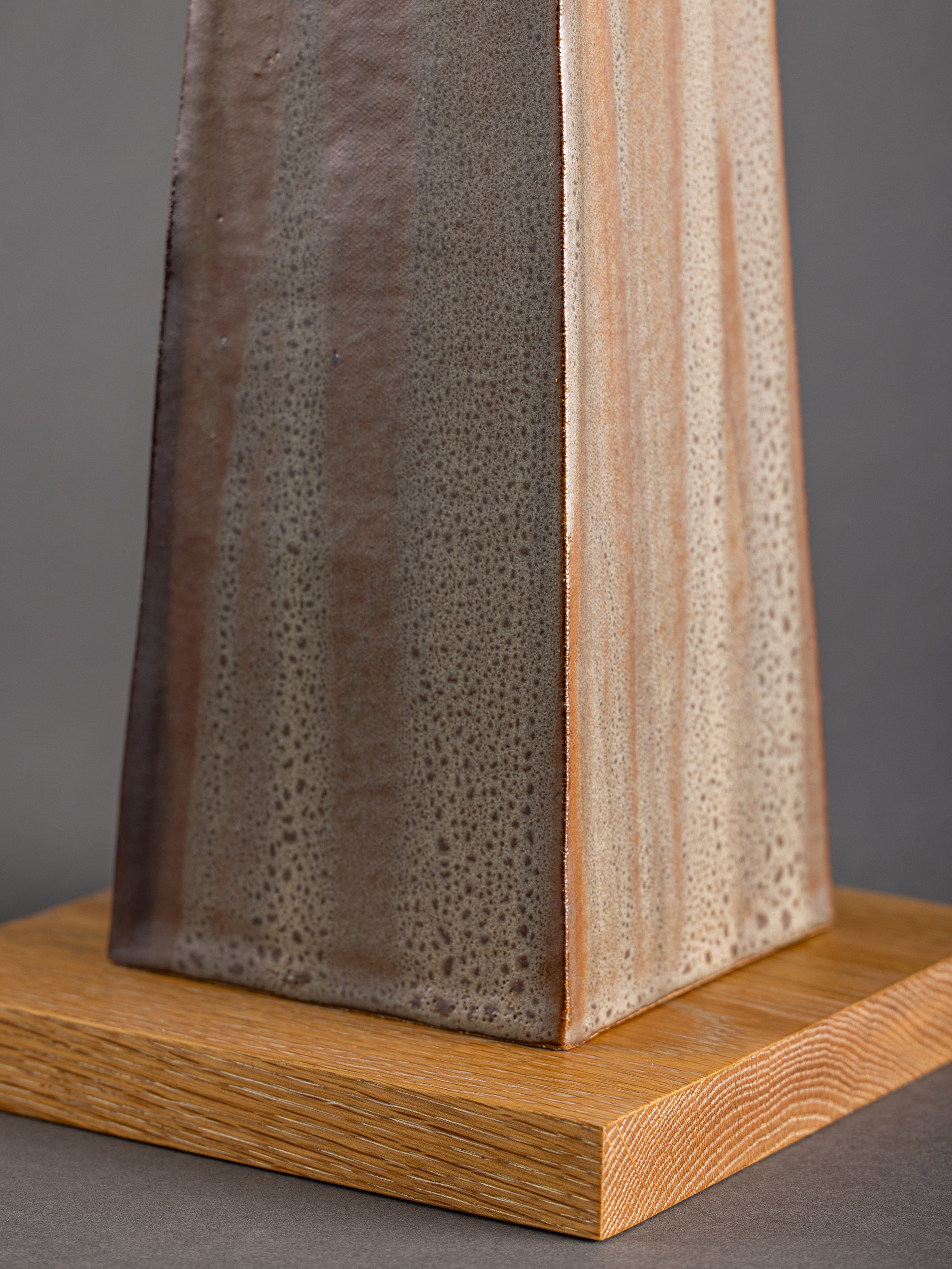 Our stoneware and oak Tower Table Lamp is handcrafted using slab-construction and cerusing techniques.