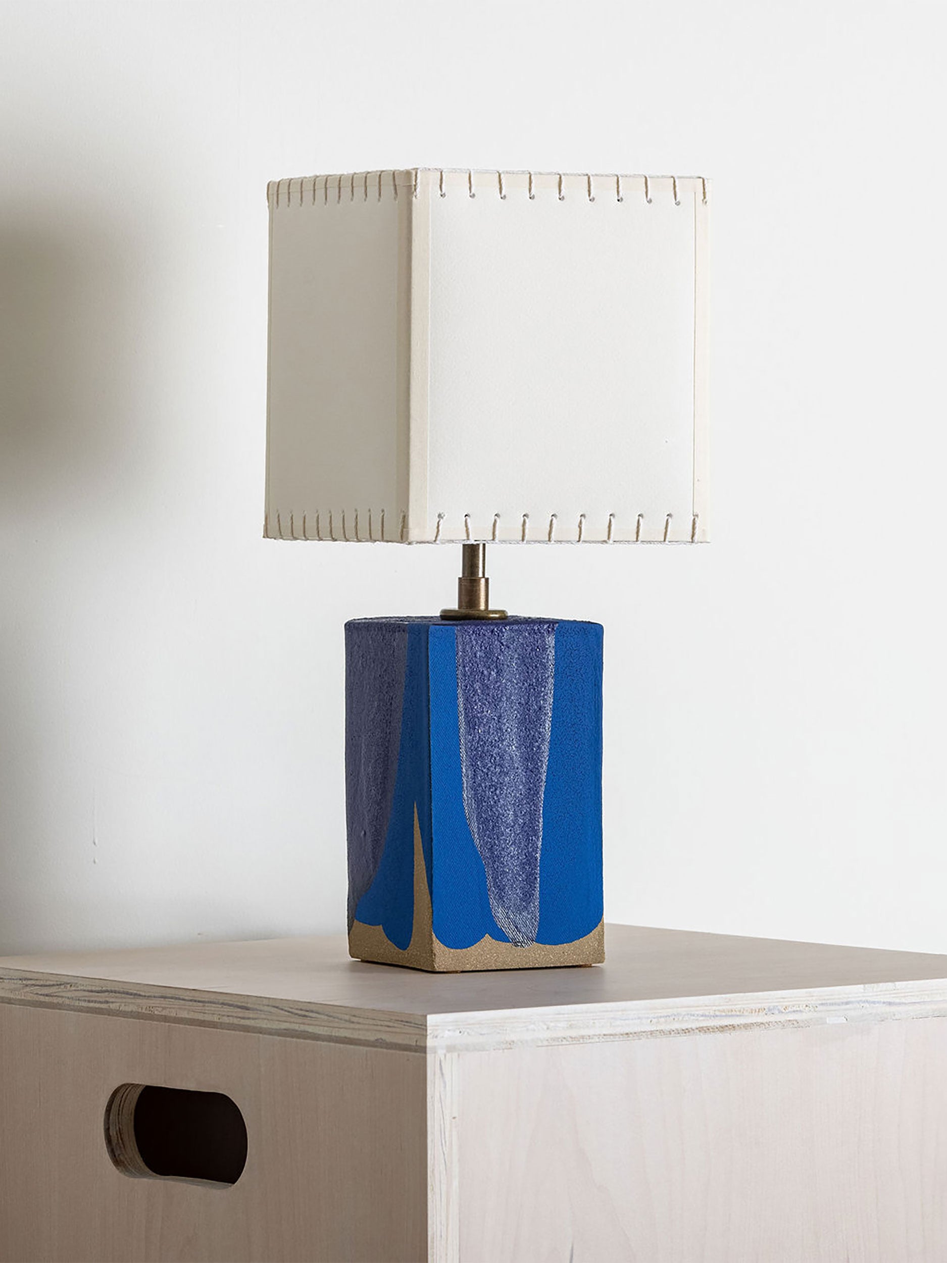Our stoneware Ultramarine Cereal Table Lamp is handcrafted using slab-construction techniques.